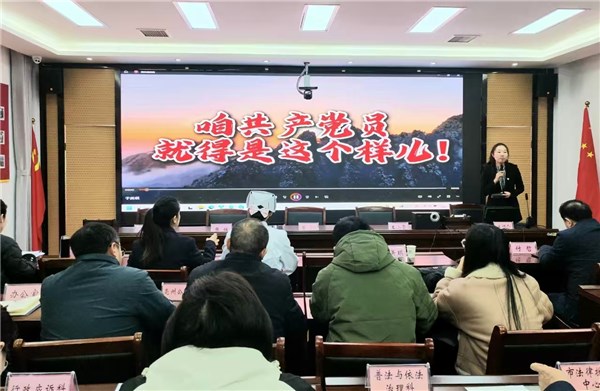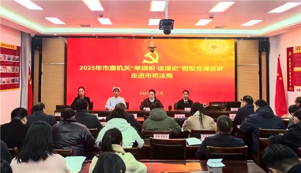 11月18日上午,2025年亳州市直机关“举旗帜·送理论”微型党课巡讲团走进市司法局,来自市检察院的王小雯同志、市第五人民医院的张媛同志、市审计局的于美琪同志,分别以《一篮没送出去的土鸡蛋》《白大褂上的药渍就是答案》《咱共产党员,就得是这个样儿》为题,为市司法局30余名党员干部带来了一场精彩的“微型党课”巡讲。市司法局政治部主任张钰主持巡讲活动。